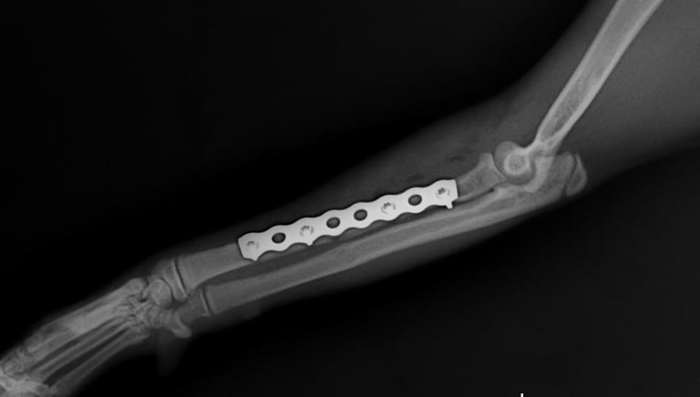 En Ostetech Vet combinamos tecnología avanzada en sistemas de placa bloqueada con una planificación quirúrgica precisa, adaptada a cada paciente. Nuestro enfoque especializado en ortopedia veterinaria nos permite ofrecer procedimientos más seguros, estables y con una recuperación más predecible.